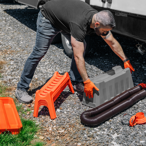 Experience the ultimate in RV sewer hose management with Camco’s Rhino RV Combo Kit. This comprehensive, hassle-free solution has everything you need for reliable sanitation on the road. At its core, this 11 piece kit has a rugged 20 Foot RhinoFLEX sewer hose, built to withstand tough conditions. It also comes with nesting hose supports, Camco durable sewer caps, a clear 90 degree hose elbow for RVs, and a 4-in-1 adapter, all neatly stored in a dual-function storage box. The storage box doubles as the starting and ending supports for the RV septic hose system, keeping sanitation essentials secure and easily accessible. Designed for portability, the box features a snap-closure lid and integrated carrying handles. Perfect for cross-country adventures or weekend getaways, this RV accessory makes managing a black water hose effortless. Combining convenience, reliability, and durability, it’s designed to enhance RV living to the fullest.