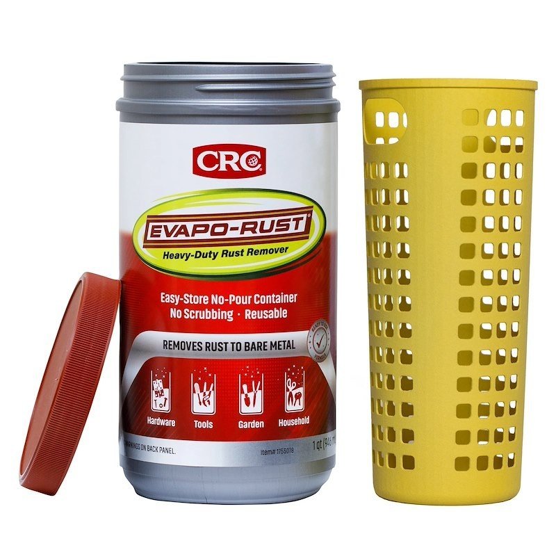 A safe and easy rust remover. Removes deep rust on all types of mild steel and iron. It is safe on all surfaces and will not harm copper, brass, aluminum, plastic, rubber or vinyl. EVAPO-RUST® is non-corrosive, water-based, reusable and contains no acids or alkalis. It is non-flammable and contains no petroleum solvents. The use-in-container canister and provided dip basket are perfect for small tools, hardware keys, and other household items. Combined with the award-winning, ready-to-use formula, the new canister makes it more convenient than ever to use Evapo-Rust. Just soak, rinse, and reuse.