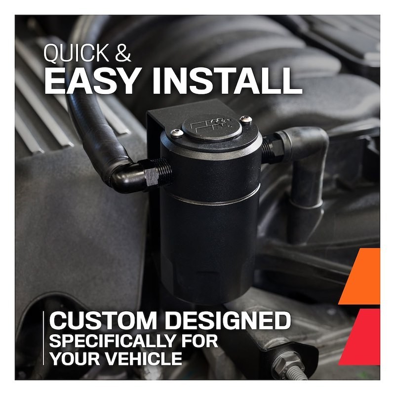 The K&N® Air Oil Separator protects the engine and intake tract from blowby by capturing the oil in our industry leading high capacity reservoir. This helps prevent power loss and possible engine damage caused by blowby. The K&N Air Oil Separator is quick and easy to install in about 30 minutes with basic tools and uses factory-style hose connections to quickly snap on and off. The oil separator replaces the factory line from the crank case allowing the oil separator to be mounted to a coinvent location in your engine bay. No tools are needed to check and empty the oil collector reservoir.