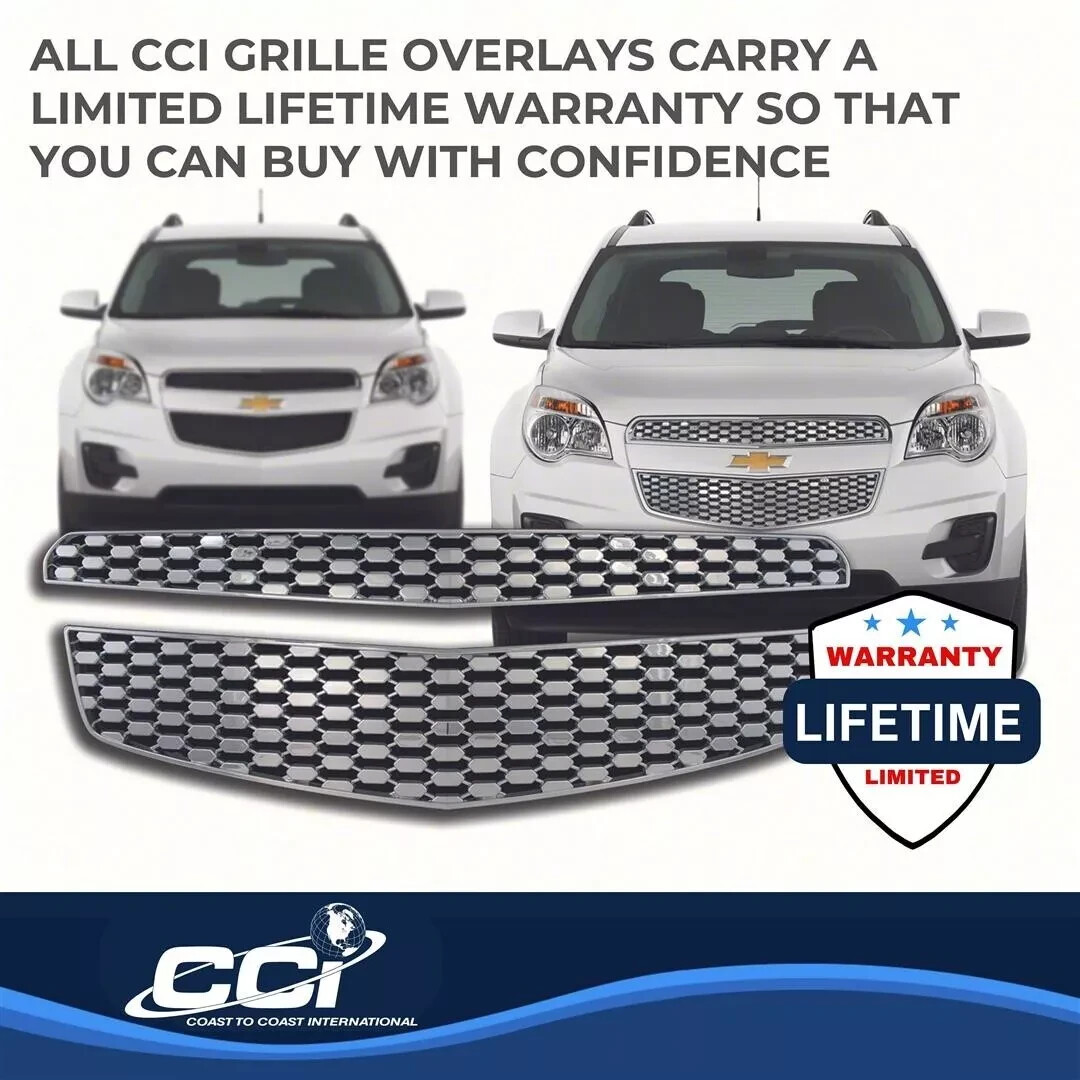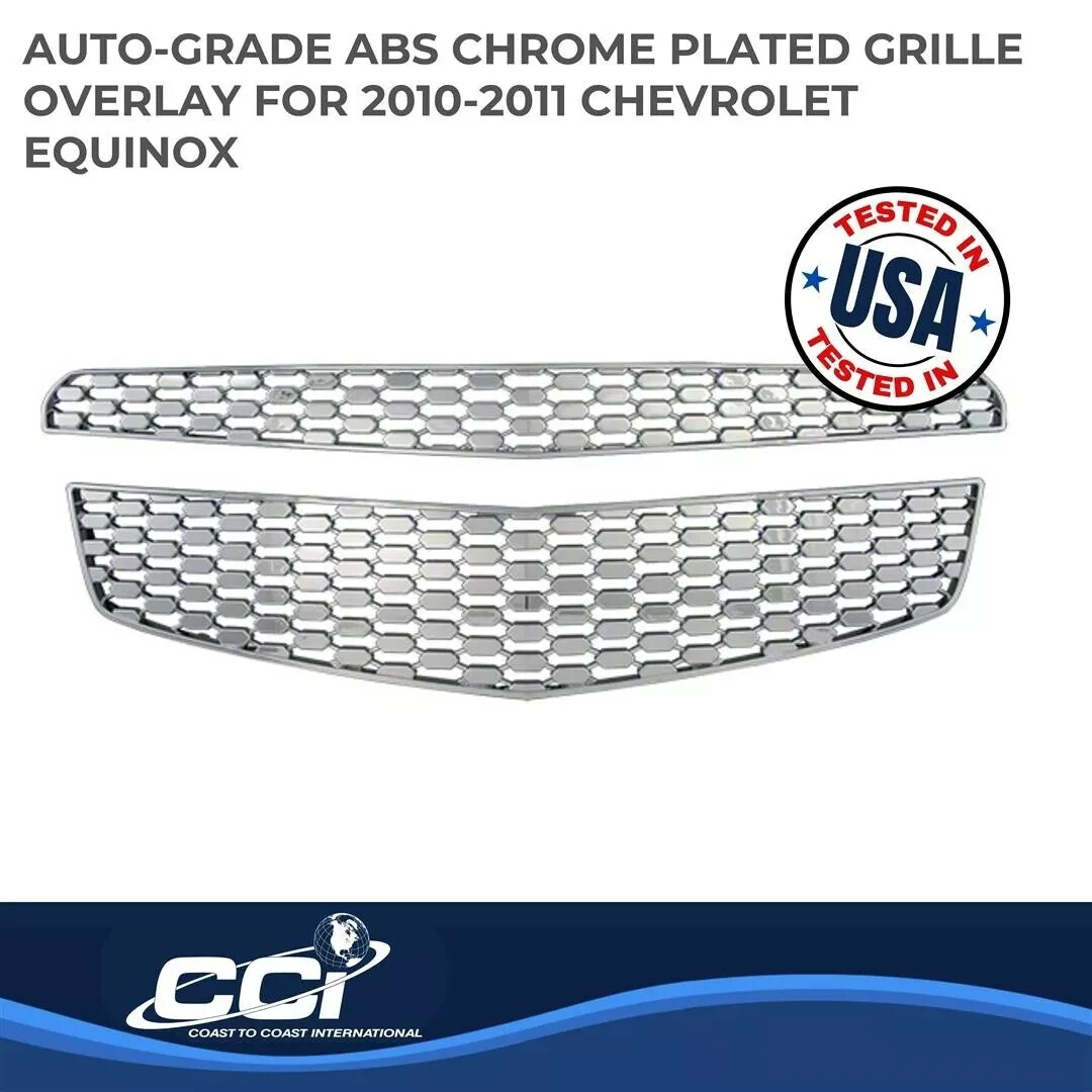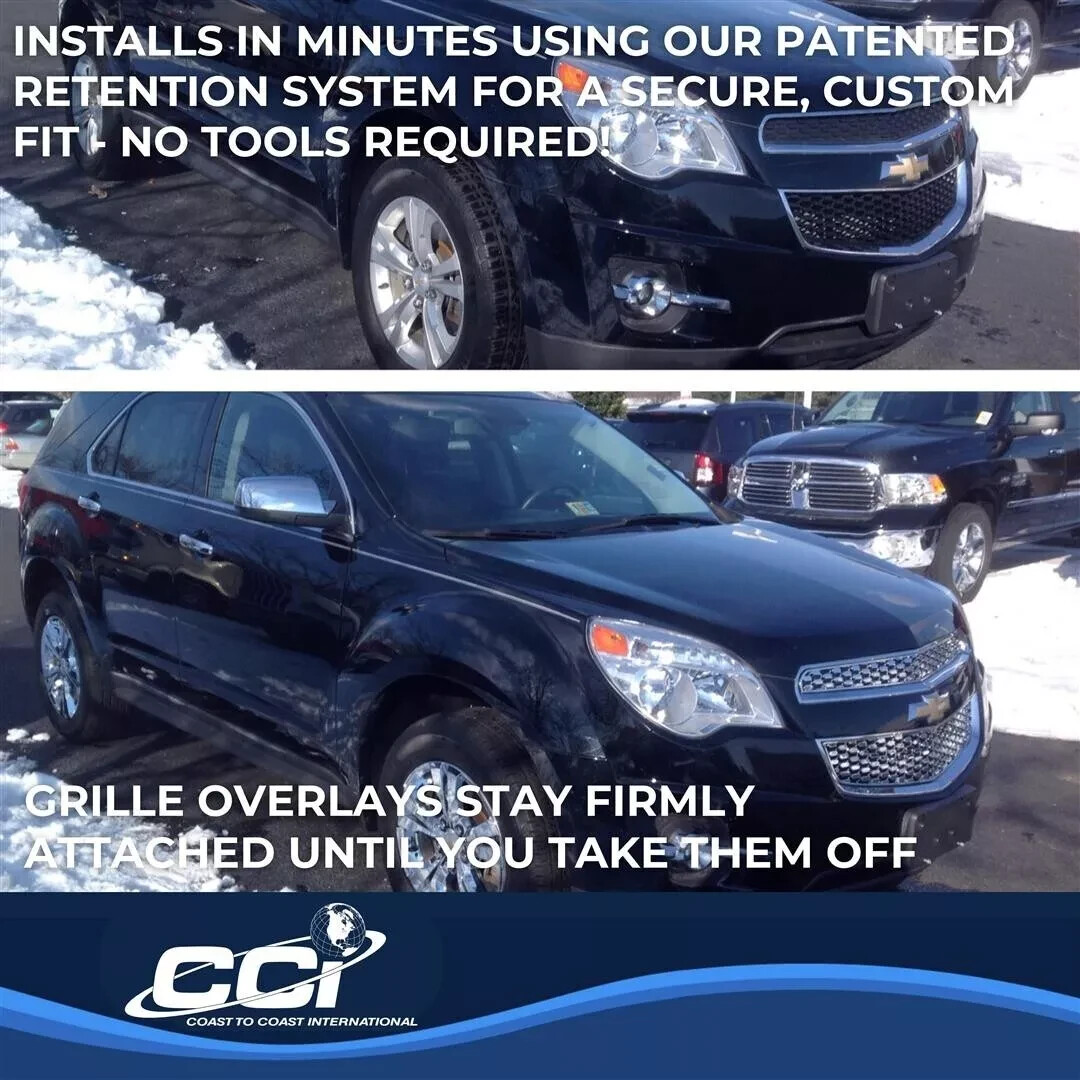 These overlays are specifically tailored to fit the factory grille featured on 2010-2011 Chevrolet Equinox models listed below. The package consists solely of the two pieces depicted in the product image. These components are designed to be applied over your OEM factory grille as an overlay. It’s important to emphasize that this product is not a replacement grille and does not include a shell or any additional components.