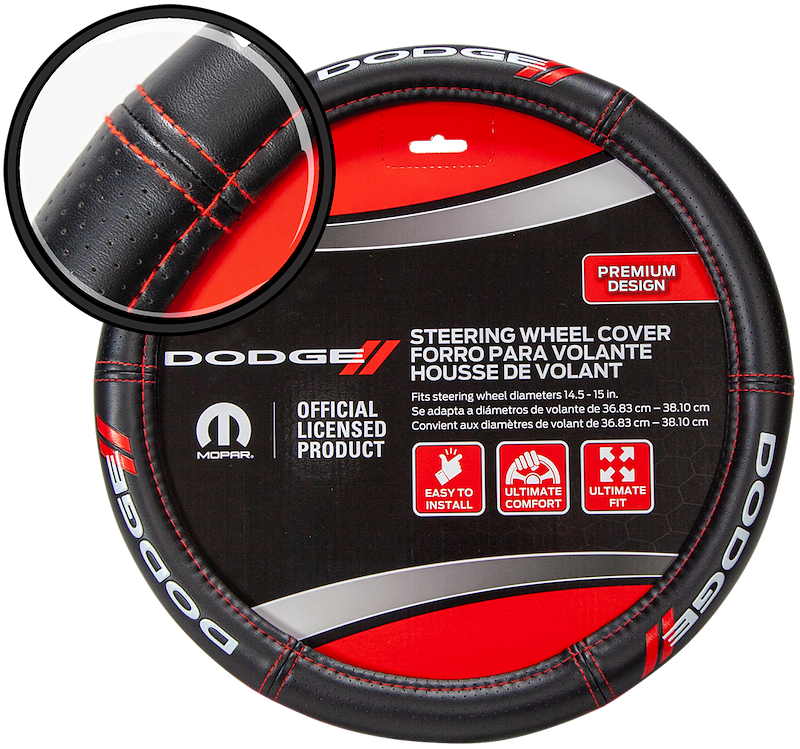 Steering Wheel Cover; For 14-1/2 To 15-1/2 Inch Wheels; Dodge Logo; Black; Rubber