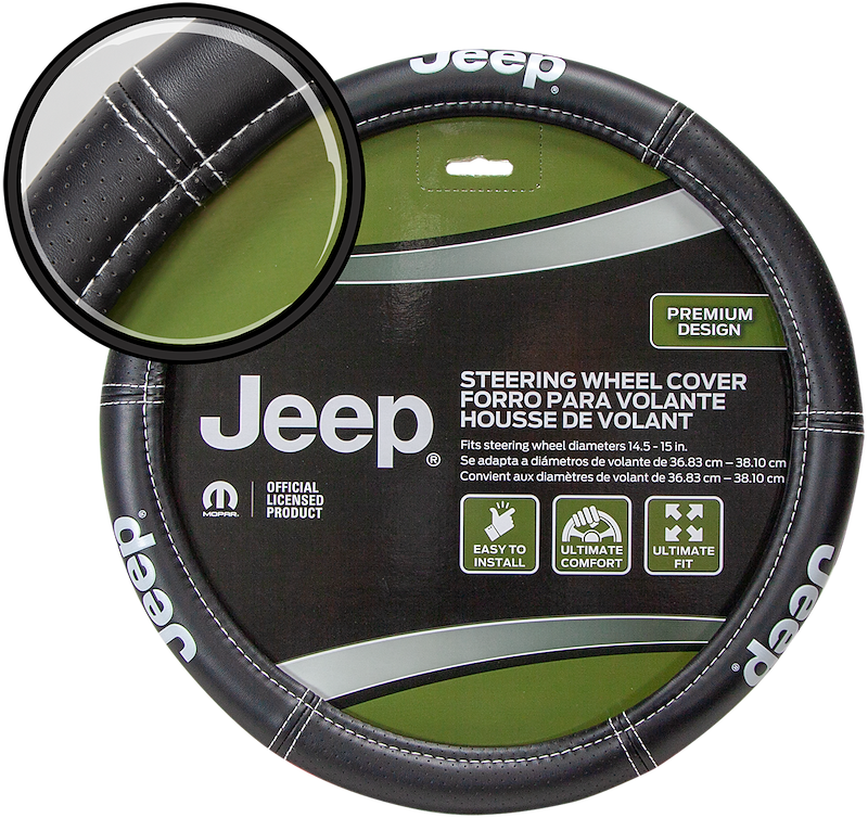 Steering Wheel Cover; For 14.5 To 15.5 Inch Wheels; Deluxe Jeep Logo; Black; Vinyl
