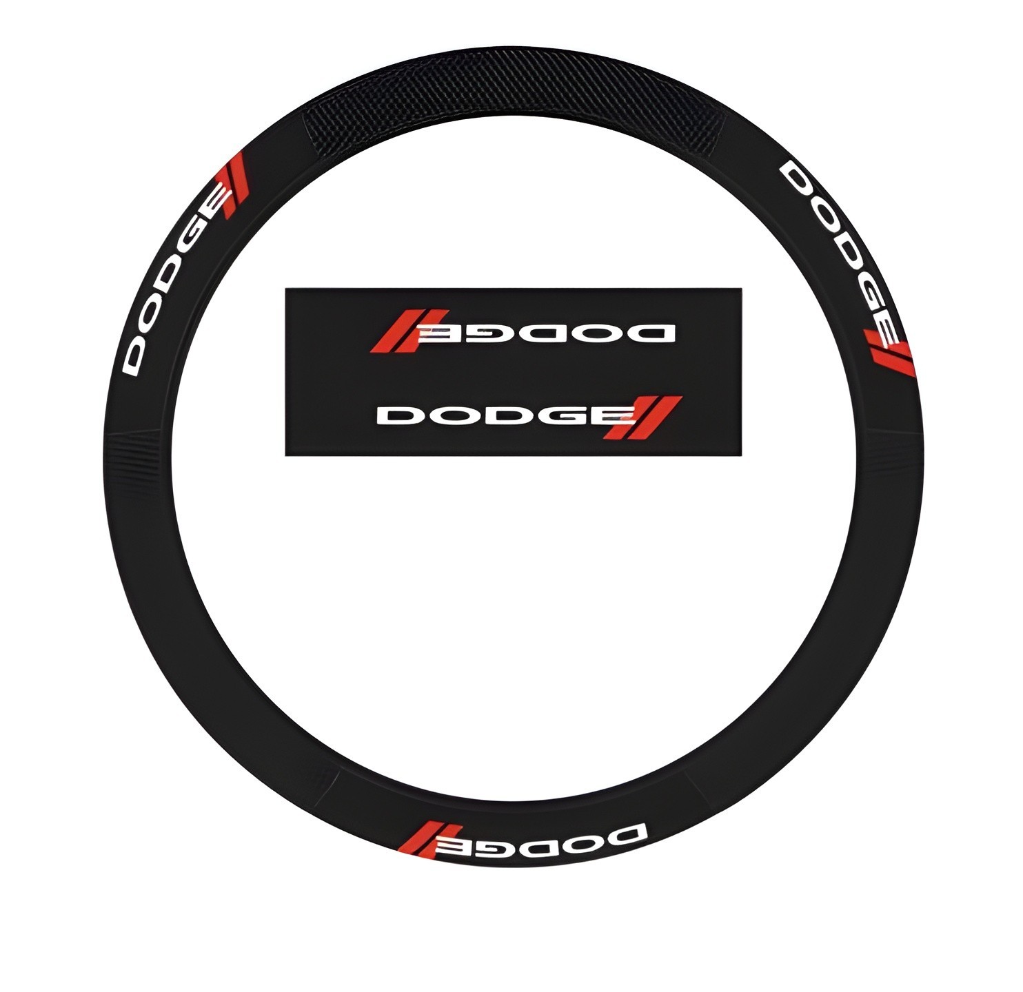 Steering Wheel Cover; Elite Series; For 14-1/2 To 15-1/2 Inch Wheels; Dodge Logo; Black/ Red; Rubber