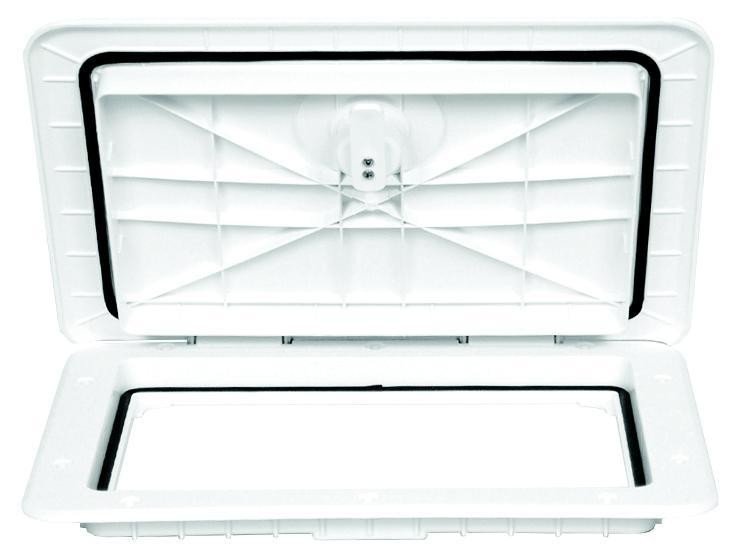 Boat Hatch; Sure-Seal®; Horizontal Storage Access Or Vertical Storage Access; 15 Inch Length x 11 Inch Width; Polar White; Lockable; 12-5/8 Inch x 8-3/4 Inch Cutout; 160 Degree Door Opening