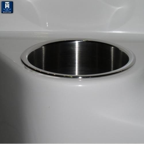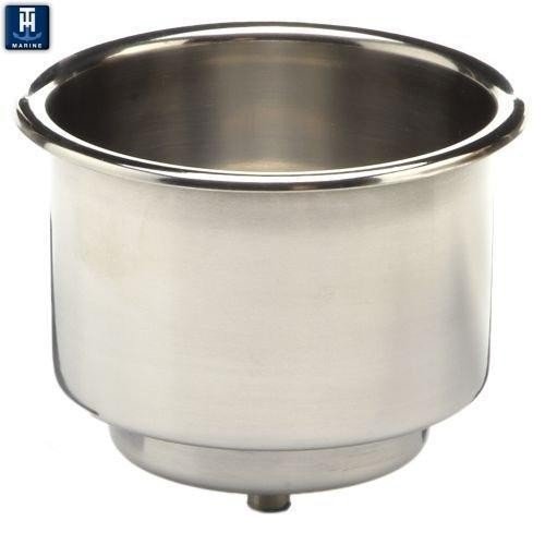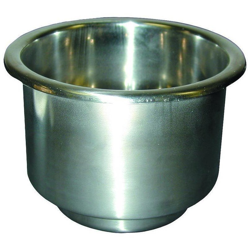 Cup Holder; Mounts On Sides Of Boat; Silver; Stainless Steel; Accepts 3/8 Inch ID Hose For Drainage; 3-5/8 Inch Diameter